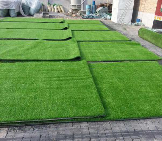 施工工藝: A.涂膠:要求用刷子在其表面涂刷厚薄均勻,底布涂上膠水,涂膠時(shí)應(yīng)分別涂于被粘接的兩粘接面上。 B.粘合:一般 以涂膠后10-30分鐘后進(jìn)行粘接,粘接時(shí)要求一次性對(duì)準(zhǔn)粘牢。 C.加壓:在粘合好后,用專用的橡皮錘從粘接處向兩邊用力錘實(shí)粘接更牢固。 D.固化:其固化時(shí)間一般為三天,檢測(cè)最終 強(qiáng)度一般為十天。因此,在固化期間需密切注意對(duì)其維護(hù),避免過(guò)于暴曬、水浸和移動(dòng),以達(dá)到粘接的最佳狀態(tài)。 E.粘接后在未撒石英砂和橡膠顆粒前,對(duì)場(chǎng)地的草皮裁切的碎片進(jìn)行清潔處理。 石英砂及彈性顆粒鋪裝工藝 F灌沙工藝:草苗內(nèi),用石英砂進(jìn)行固定草苗,使草苗不倒伏,灌沙到草苗內(nèi),在草苗表面鋪撤橡膠顆粒,鋪撒要均勻。 G人工草皮場(chǎng)材確實(shí)安裝完成后,方可鋪設(shè)石英砂及橡膠顆粒。 H石英砂鋪裝完成后需使用帶有硬質(zhì)毛刷來(lái)回鋪刷使石英砂下落充分密實(shí)。